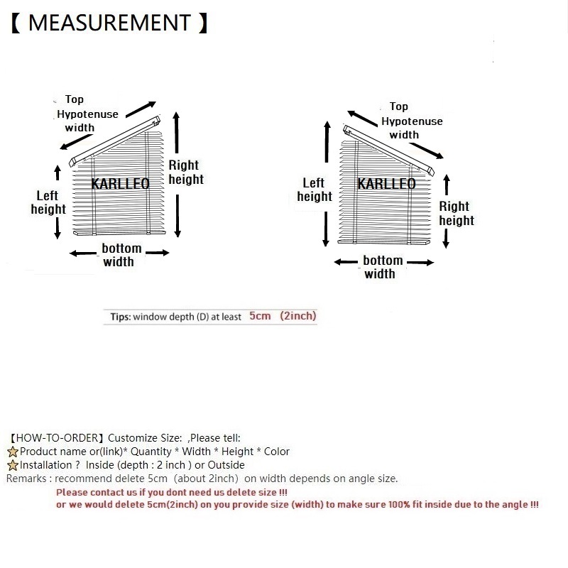 Remarks : recommend delete 1-5 cm(about 0.5inch - 2 inch)on width depends on angle size.