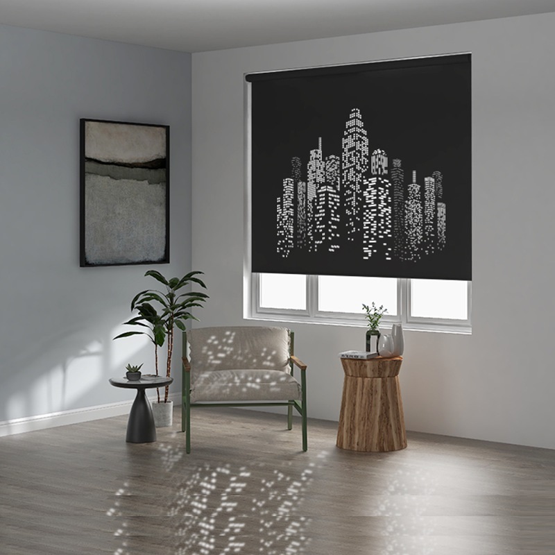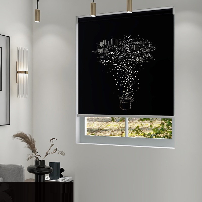 Laser Engraved Hollow Roller Blinds,Sunshade Blackout Roller Blinds,Custom Black Roller Shades,Personalized Simply Window Curtains.Manual or Electric 250106